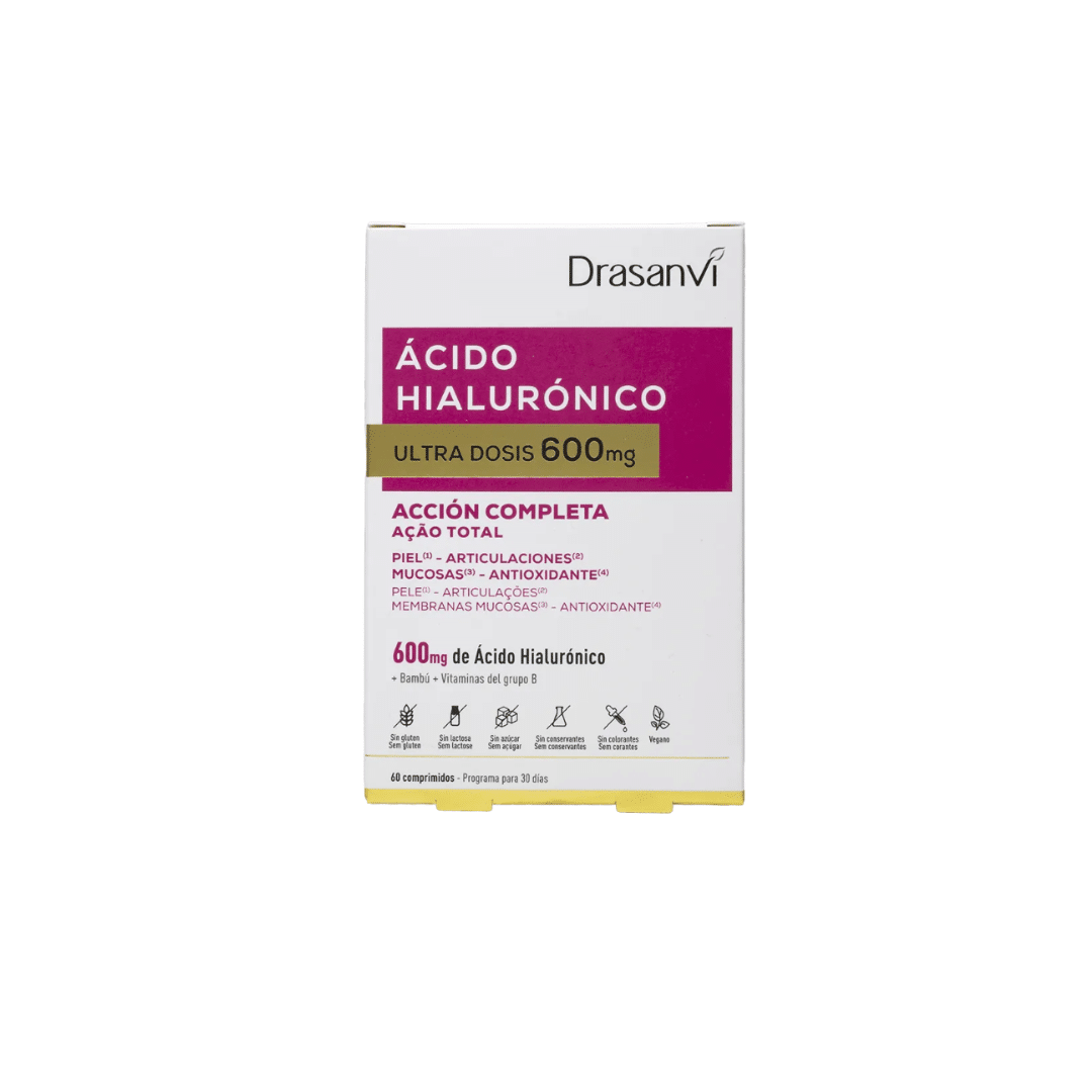 O DRASANVI Ácido Hialurónico Ultra Dose 600 mg é uma fórmula avançada que oferece alta concentração de ácido hialurónico, conhecido pela sua capacidade de reter água e contribuir para a hidratação profunda da pele.
