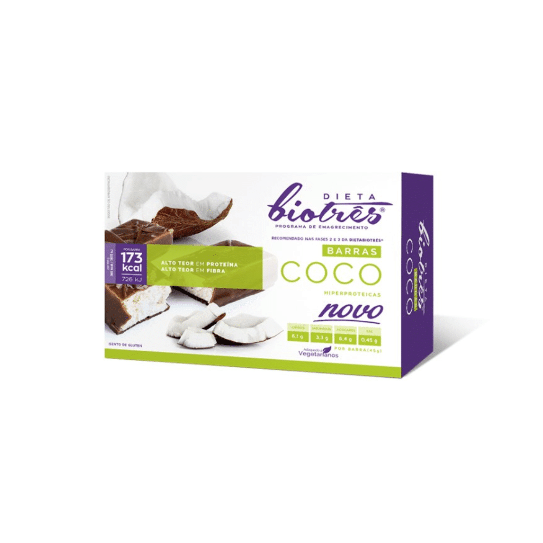 As Barras de Coco DIETABIOTRÊS, pelas suas características hiperproteicas e hipoglucídicas, são uma alternativa prática e saudável como alimento no intervalo das refeições principais. Atuam, auxiliando o processo de perda de gordura, mantendo a massa muscular.