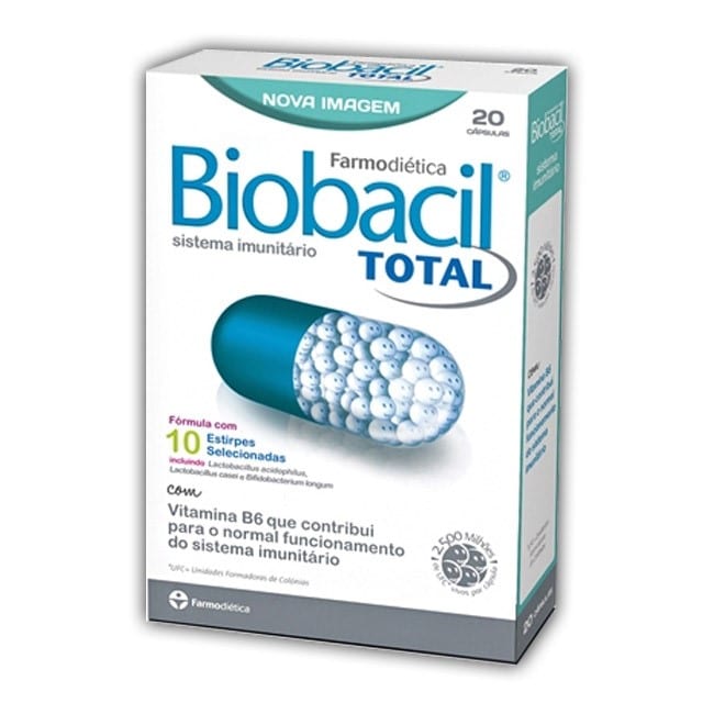 Biobacil Total é um suplemento alimentar composto por 10 estirpes de probióticos que ajudam a melhorar a composição e propriedades da flora intestinal, a regular o trânsito intestinal, a reforçar o sistema imunitário, ajudando a prevenir a infecção por agentes patogénicos, e conferindo ainda outros benefícios de saúde.