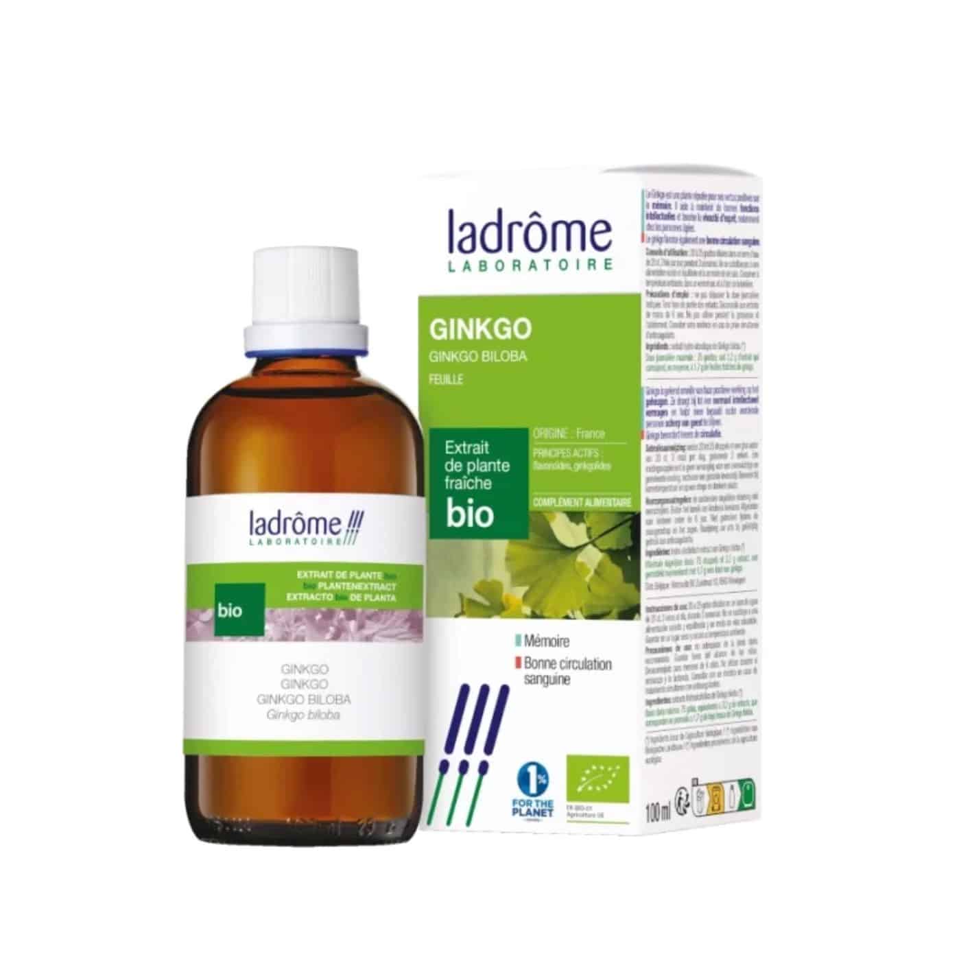 Extrato hidroalcoólico de Ginkgo biloba*. (*) Ingredientes provenientes da agricultura biológica. Teor alcoólico aprox: 64%.
