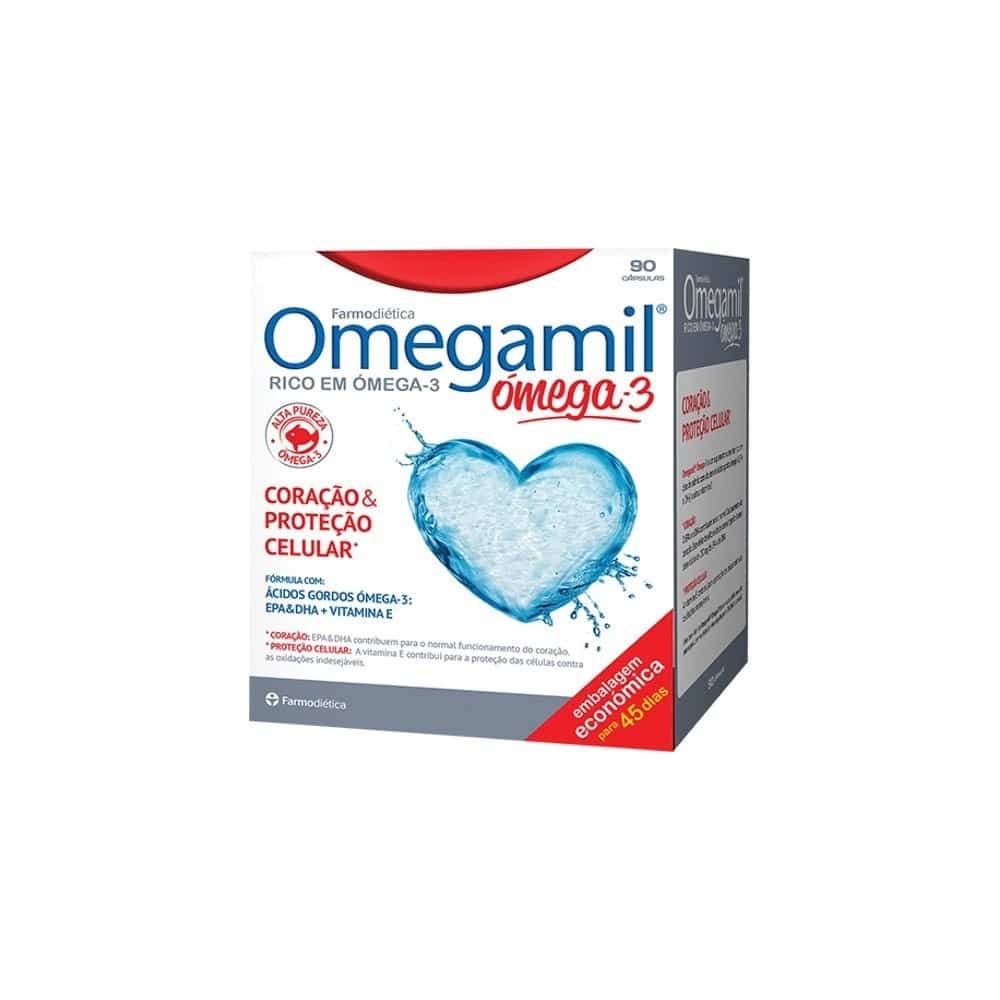 Omegamil 90 cápsulas é um Suplemento Alimentar composto por ácidos gordos poli-insaturados Ómega-3 ricos em EPA e DHA, essenciais para a saúde, equilíbrio, desenvolvimento e bem-estar do nosso organismo. Os ácidos gordos Ómega-3 constituem uma ajuda importante na redução dos valores dos triglicéridos, na normalização dos níveis de colesterol e na proteção cardiovascular.