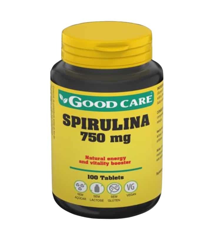 Espirulina (Spirulina platensis); Agente de volume: Croscarmelose sódica; Antiaglomerantes: Dióxido de silício (Sílica), Ácido esteárico, Sais de magnésio de ácidos gordos.